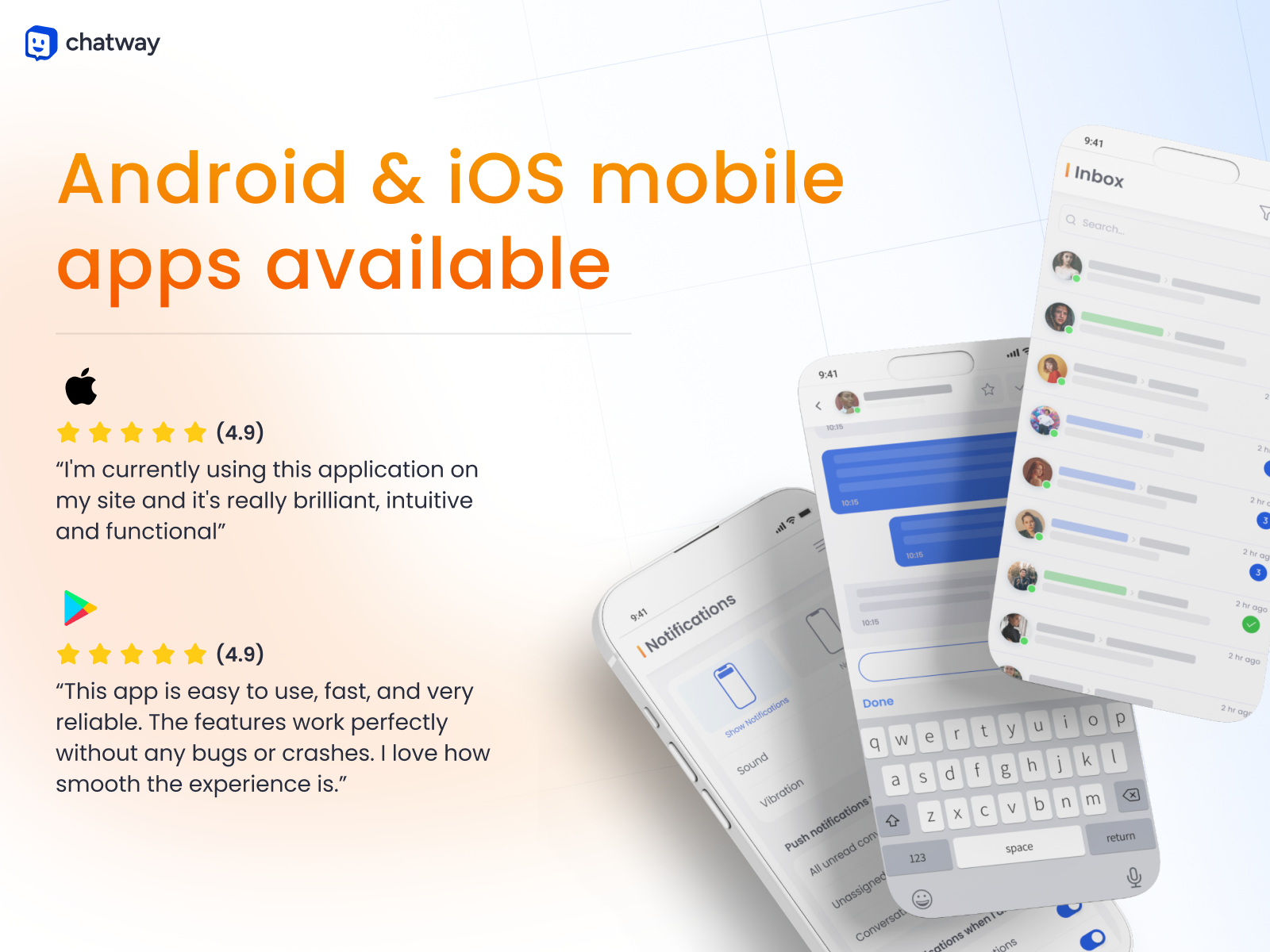 Along the web version, Chatway live chat also offers Android & iOS mobile apps.