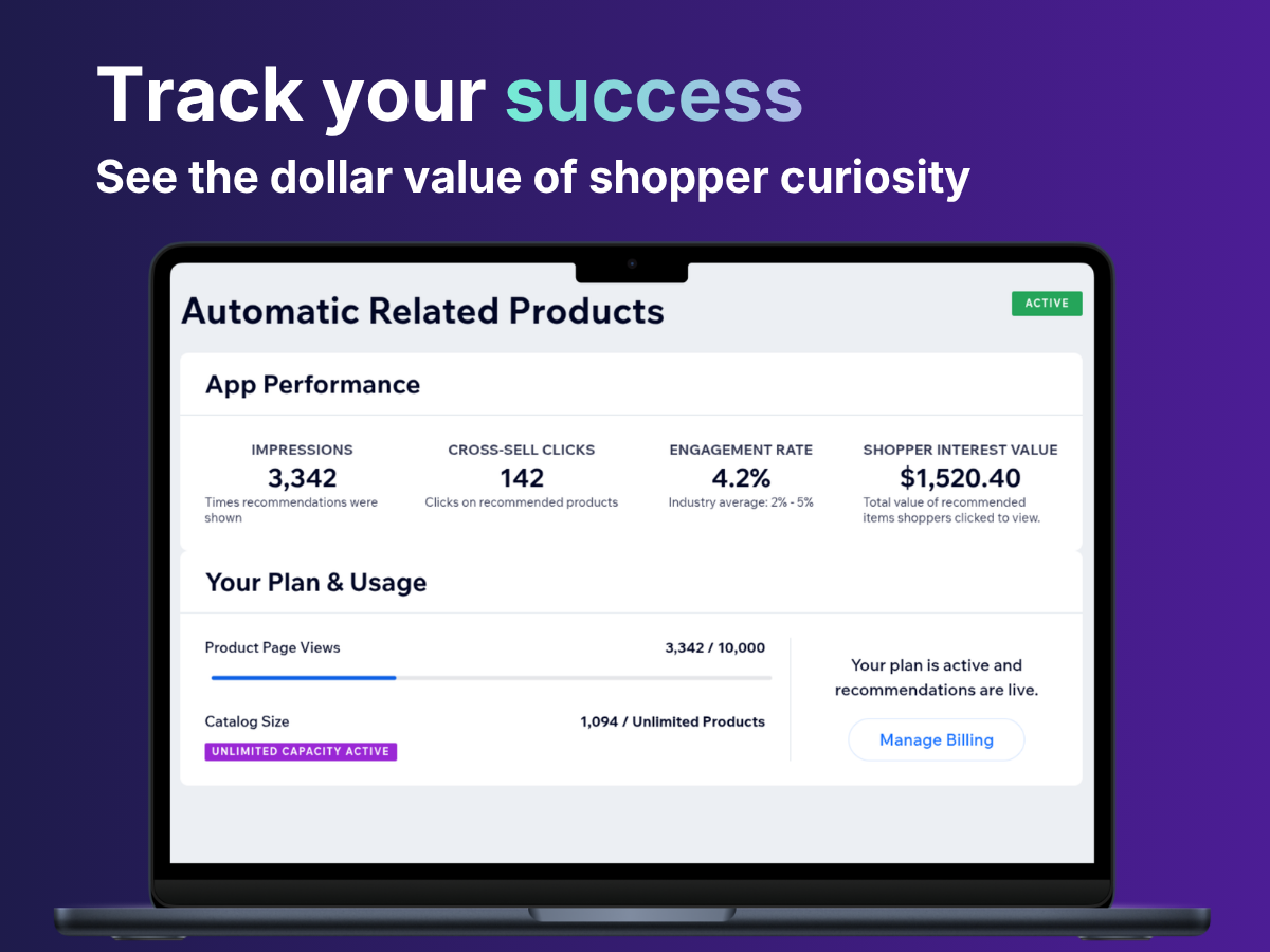 FEATURED APP: Rated "Popular This Month" for driving automated cross-sells. Sell More with Amazon-Style Recommendations. Did you know 35% of Amazon’s revenue comes from related products? Bring that exact same power to your store in seconds. Automatic Related Products displays smart recommendations 24/7, showing customers exactly what they want to buy next. Stop losing potential sales and start increasing your Average Order Value without lifting a finger. It is lightning-fast, fully automated, and won't slow down your product pages. Track Your Success: Built-in analytics let you monitor the exact widget views and clicks directly in your dashboard so you always know how your recommendations are performing. Ready to grow? Click 'Add to Site' to start your Free Plan.