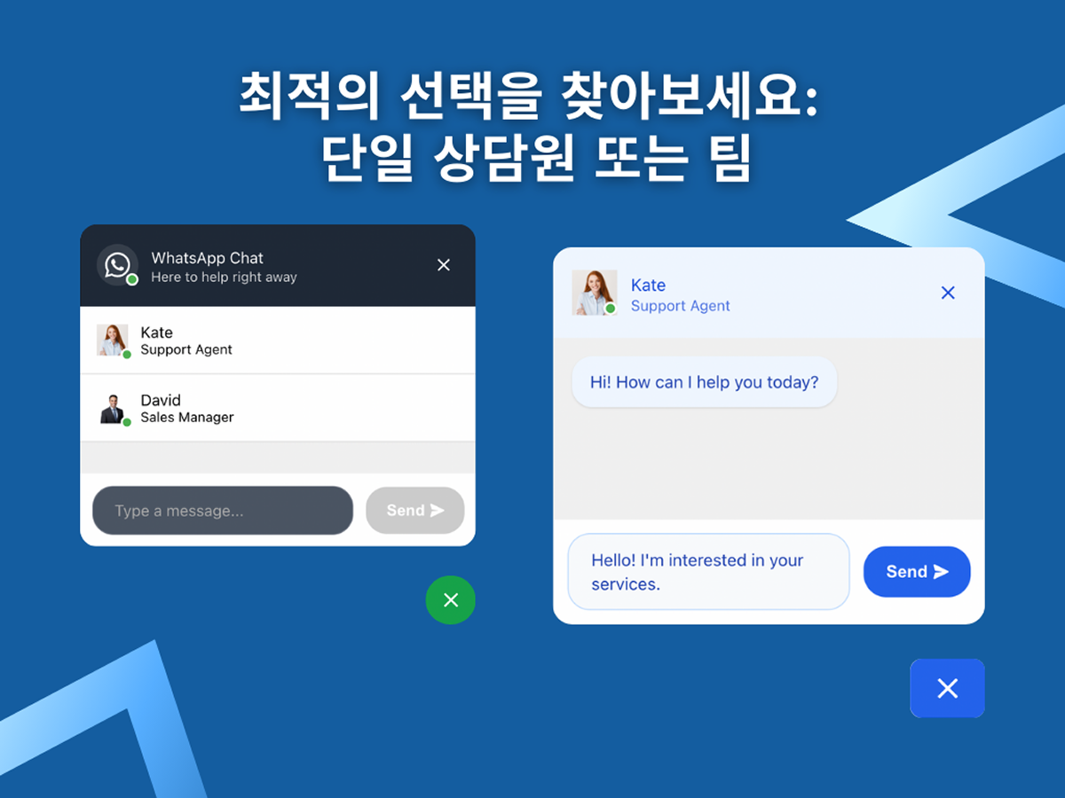 여러 연락 옵션을 통해 빠른 고객 지원을 제공하고, 방문자가 즉시 올바른 팀원과 연결될 수 있도록 하세요. 참여도를 높이고 전환율을 개선하며, 고객이 가장 선호하는 메시징 앱에서 지속적으로 소통할 수 있습니다.